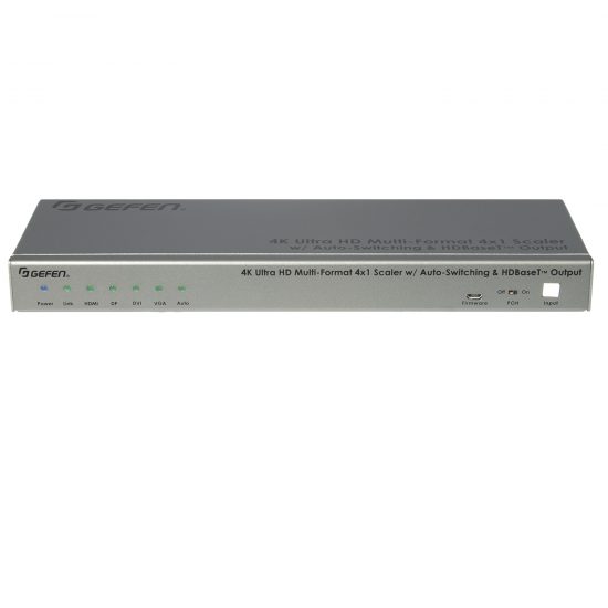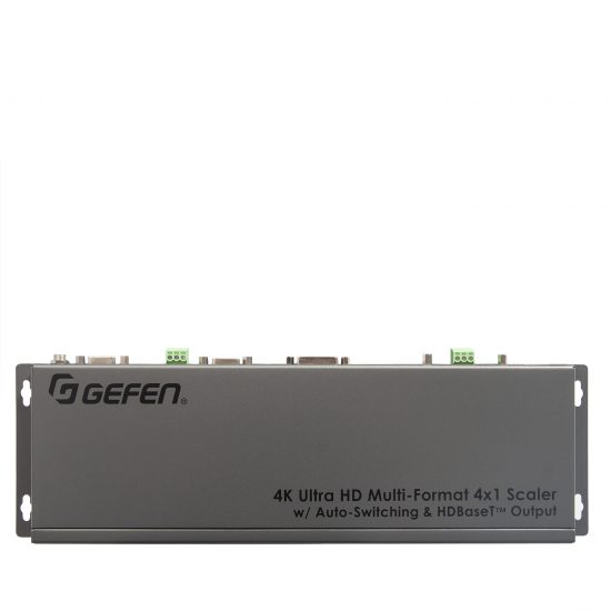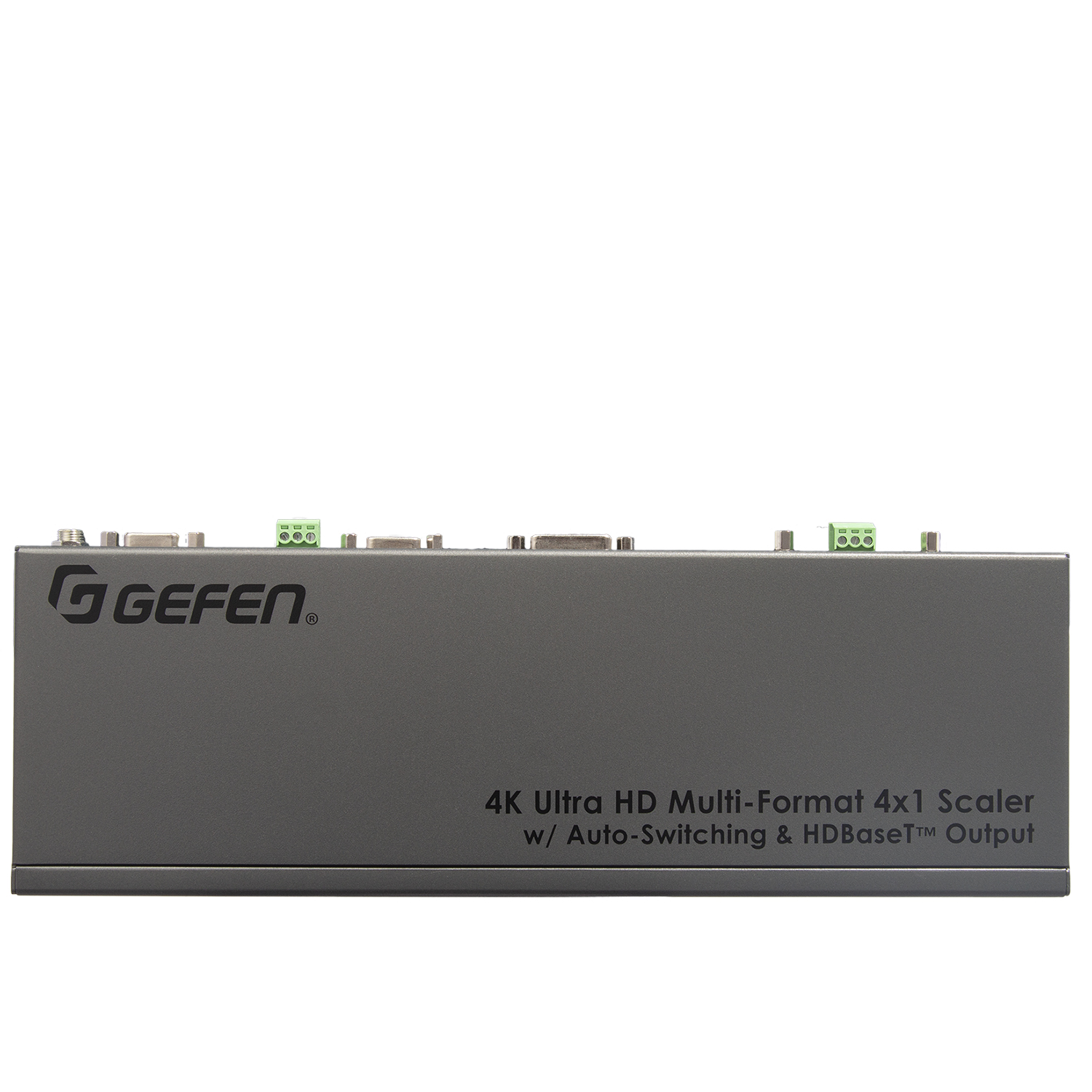 Gefen EXT-4K300A-MF-41-HBTLS 4K Ultra HD daudzformātu 4 × 1 mērogošanas ierīce ar automātisku pārslēgšanu un sadalītām HDMI un HDBaseT izvadēm