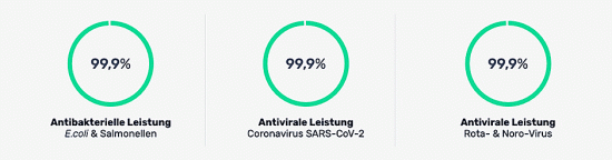 ✔ 99,9% vīrusu, baktēriju un piesārņotāju sadalīšanās