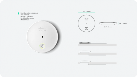 Cisco Webex galda mikrofons ir jaunākās paaudzes mikrofona produkts Cisco video konferenču telpu sistēmām. Tas aptver visus lietošanas gadījumus, ko iepriekš apkalpoja galda mikrofons 20 un galda mikrofons 60, un ir ideāli piemērots daudzvirzienu pārklājumam mazām līdz lielām telpām ar fiksētiem galdiem. Tas ir paredzēts, lai galdi būtu sakārtoti un tīri, jo to var iegremdēt galdā vai vienkārši balstīties uz magnētiskas galda plāksnes.