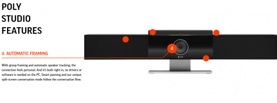 Padariet savienojumu personisku: grupu kadrēšana un automātiskā skaļruņu izsekošana ir iebūvēta tieši, pateicoties Poly DirectorAI tehnoloģijai. Nav nepieciešami draiveri vai programmatūra. Ikviens videozvana dalībnieks var redzēt svarīgās detaļas — līdz pat ķermeņa valodai un sejas izteiksmēm. Un, izmantojot prezentētāja režīmu, kamera seko prezentētājam tā, it kā telpā būtu kameras operators.
